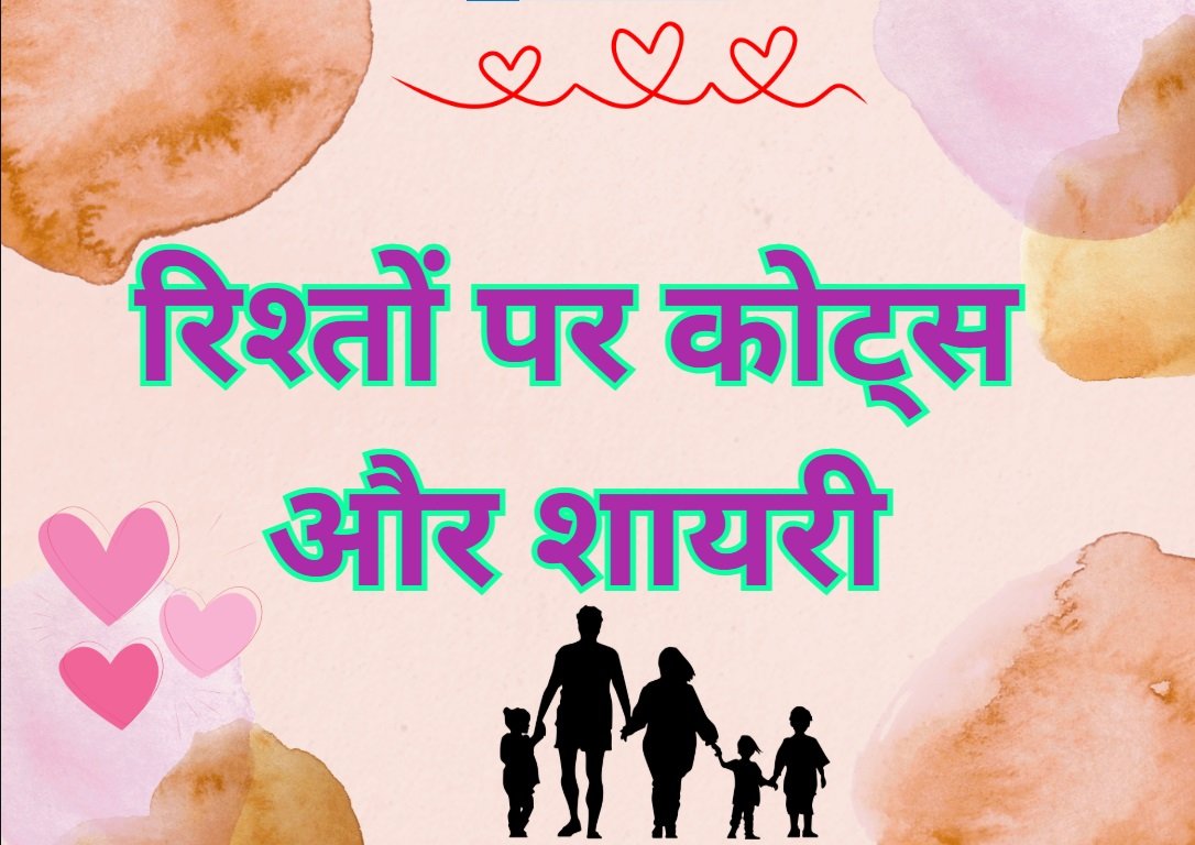 रिश्ते (Relationships) हमारे जीवन की सबसे बड़ी पूंजी होते हैं। चाहे वह परिवार के रिश्ते हों, दोस्ती का रिश्ता हो, या प्यार का रिश्ता – ये हमें संबल, प्यार और जीवन का असली अर्थ सिखाते हैं। इस लेख में हम आपको Rishte Quotes का एक बड़ा संग्रह देंगे जो आपके दिल को छू जाएगा।